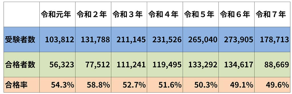 ITパスポート試験の合格率は年度によって多少変動しますが、おおむね50%前後で推移しています。